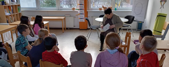 Aus 22 Geschichten konnten die Schüler und Schülerinnen wählen. Die vorgelesenen Geschichten waren in den Sprachen Deutsch, Englisch, Arabisch, Französisch und Russisch zu hören. Im Anschluss daran wurden Aktivitäten zum jeweiligen Buch in Sprache, Bewegung, Klang und Bild umgesetzt. Vorlesen verbindet über Generationen, Herkunft und Lebenswege hinweg. Kinder, denen regelmäßig vorgelesen wird, haben bessere Chancen in der Schule und im Leben. Gleichzeitig fördert gemeinsames Lesen den gesellschaftlichen Dialog, gegenseitiges Verständnis und den Zusammenhalt in einer vielfältigen Gesellschaft. Es schafft Zugänge zur Sprache, zum Bildungserfolg und zum Gemeinschaftserleben und Demokratiebildung. Lesekompetenz ist der Schlüssel zur Welt.