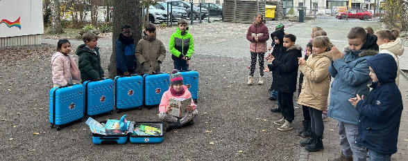 In 50 verschiedenen Sprachen spiegelt der Bücherkoffer die Vielfalt in unserer Gesellschaft und an unserer Schule wider und fördert das (Vor-)Lesen in der Familiensprache. Jedes Kind lernt, dass seine Sprache und Kultur ein Schatz sind. Der Bücherkoffer leistet damit einen Beitrag zur sprachlichen Bildung für alle Kinder und stärkt sie in ihrer Persönlichkeitsentwicklung sowie zur Übernahme von Verantwortung. So leisten wir einen wichtigen Beitrag um Mehrsprachigkeit als Chance in unserer Schule zu fördern und zu leben.