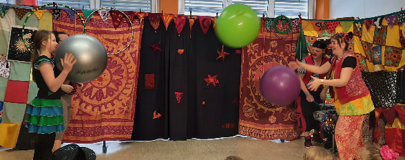 Täglich wurde fleißig geübt, gelacht und gemeinsam an einer großen Abschlussaufführung gearbeitet. Die Künstler führten die Übungen geduldig durch, gaben Hilfestellung bei Bewegungen und förderten vor allem Mut, Neues auszuprobieren. Die Projektwoche mit Zirkus Bombastico war eine voller Energie, Lachen und Staunen. Alle Teilnehmenden gingen mit neuen Fähigkeiten und stolzem Gefühl nach Hause – und zwei wundervolle Abschlussvorstellungen zauberten Eltern und Besuchern ein Lächeln ins Gesicht. Das Publikum applaudierte begeistert!